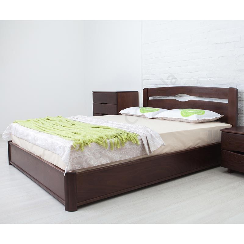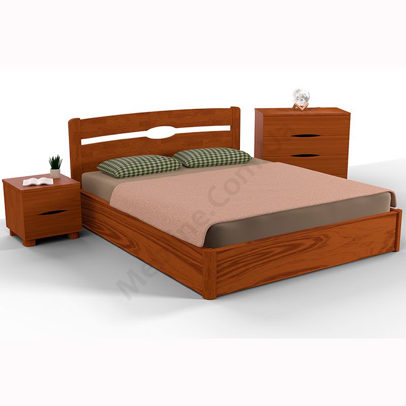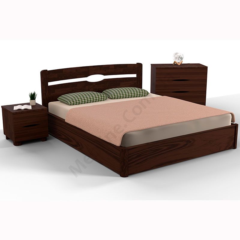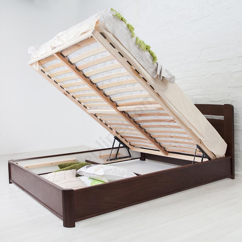 Двоспальне дерев’яне ліжко з підйомним механізмом та твердим узголів’ям.