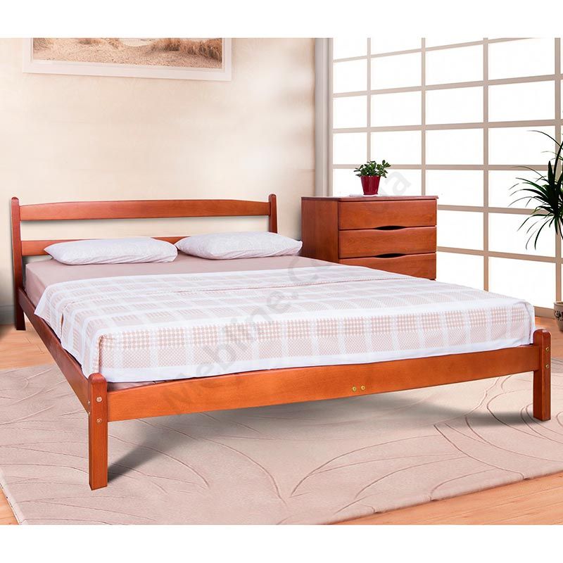 Двоспальне дерев’яне ліжко на ніжках з твердим узголів’ям.