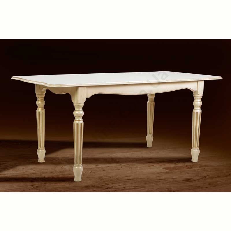 Обідній розкладний стіл із натурального дерева з фігурними ніжками.