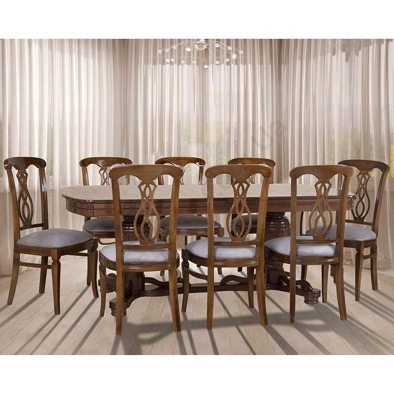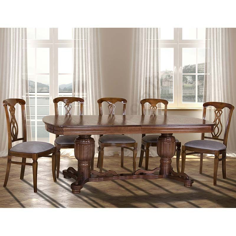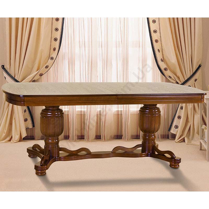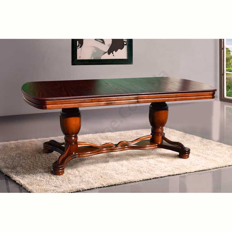 Обідній розкладний стіл із натурального дерева з фігурними ніжками.