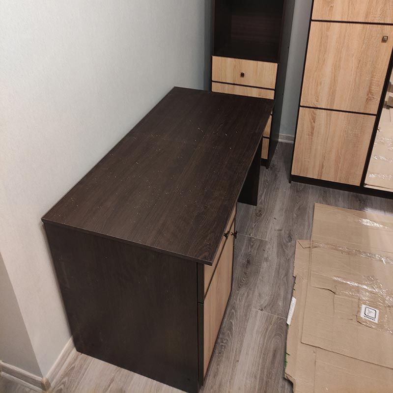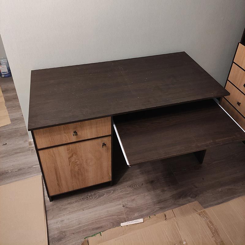 Комп’ютерний стіл з тумбою, висувною шухлядою та поличкою.