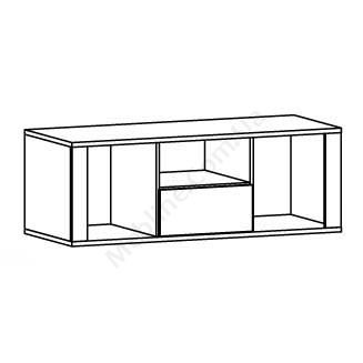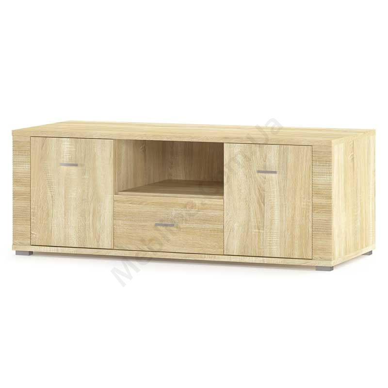 Тумба під телевізор з двома дверцятами, висувною шухлядою та відкритою поличкою.