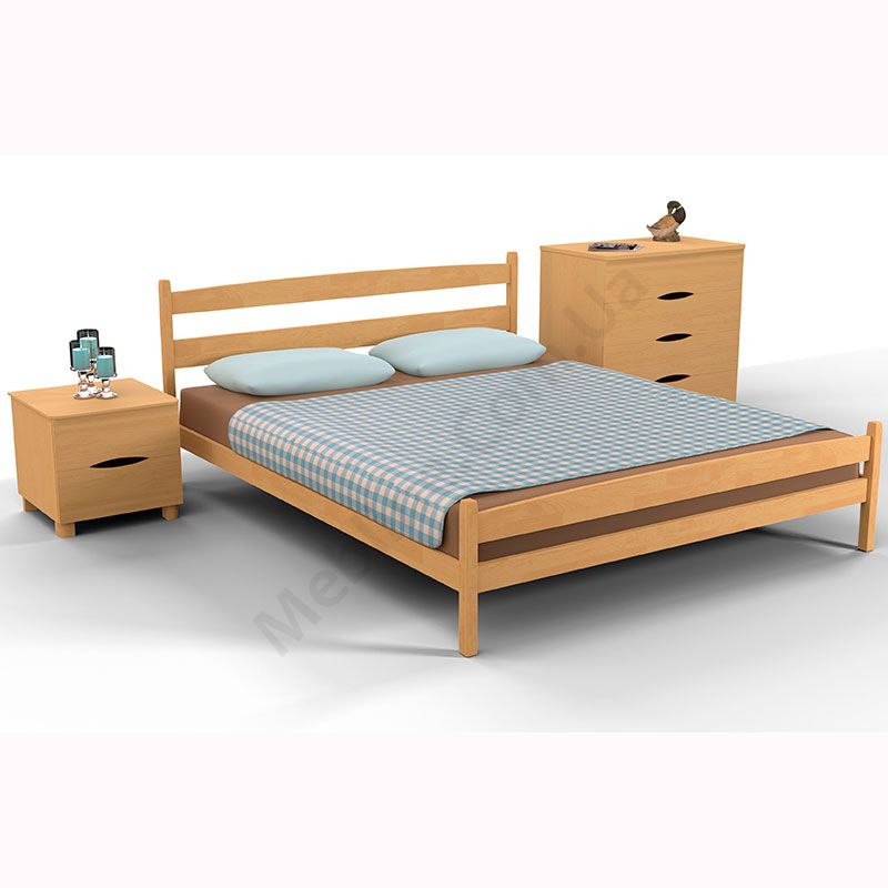 Двоспальне дерев’яне ліжко на ніжках з твердим узголів’ям та узніжжям.