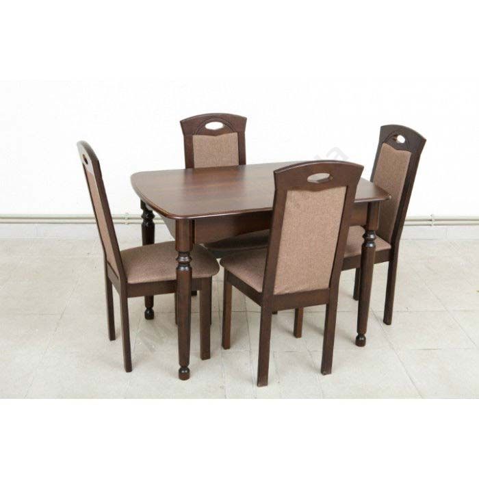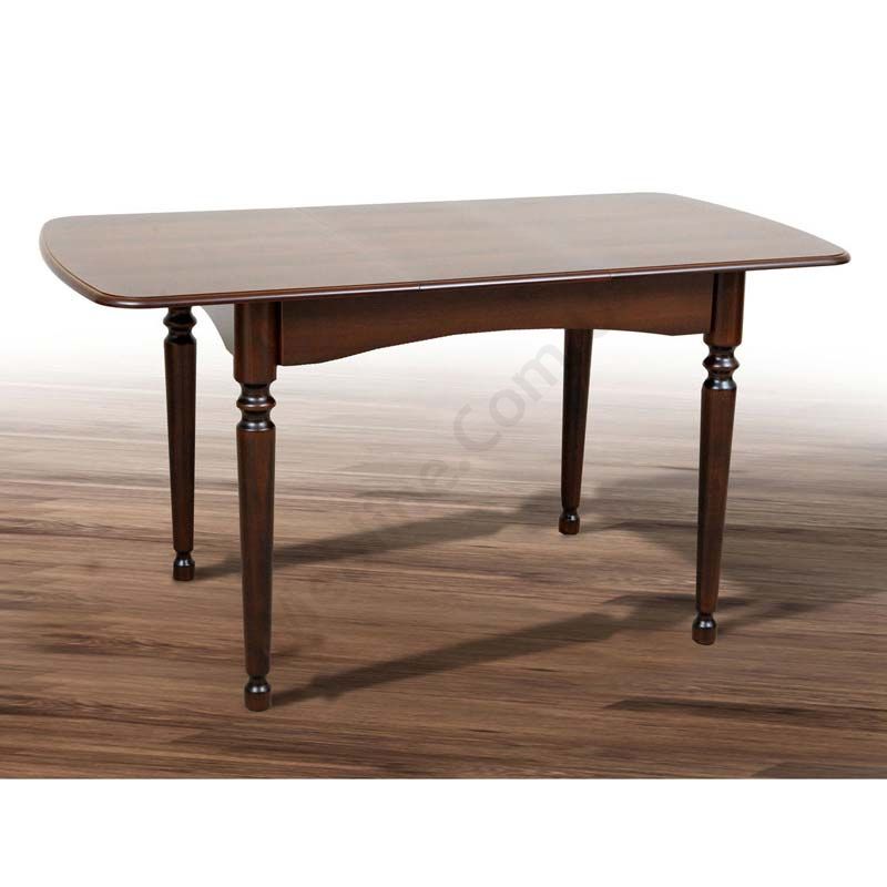 Розкладний обідній стіл із натурального дерева із закругленими кутами та різьбленими ніжками у кольорі Горіх Темний.