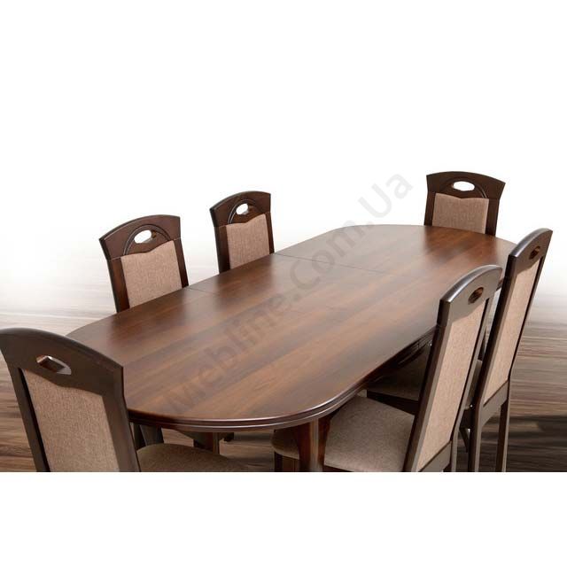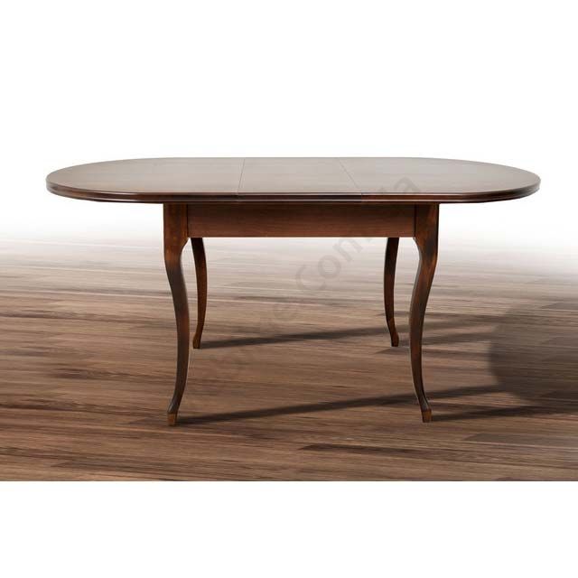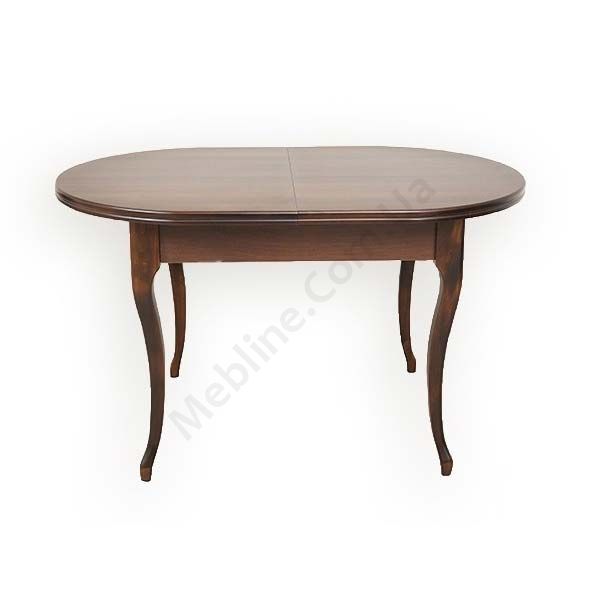 Розкладний обідній стіл із натурального дерева із закругленими кутами та вигнутими ніжками у кольорі Горіх Темний.