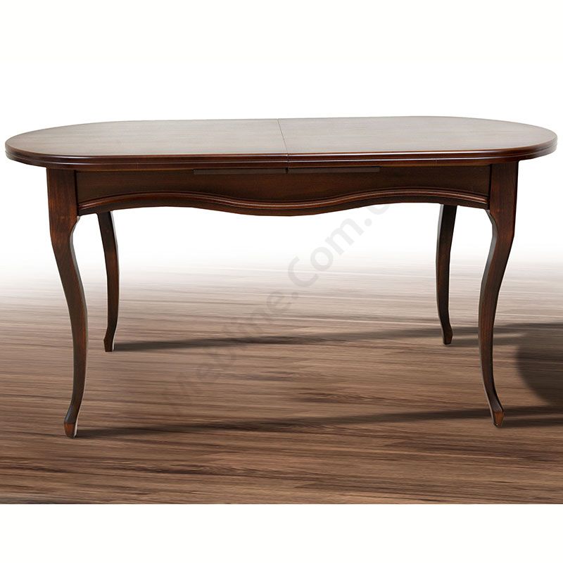 Розкладний обідній стіл овальної форми з натурального дерева з вигнутими ніжками.