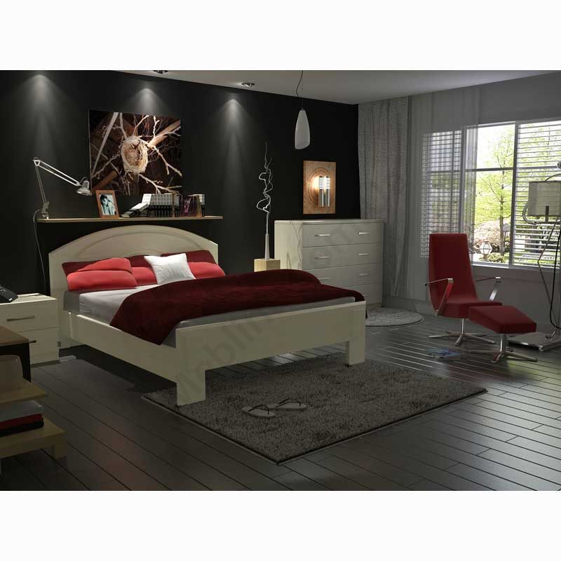 Двуспальная кровать в цвете Белый Жемчуг с выгнутым изголовьем.