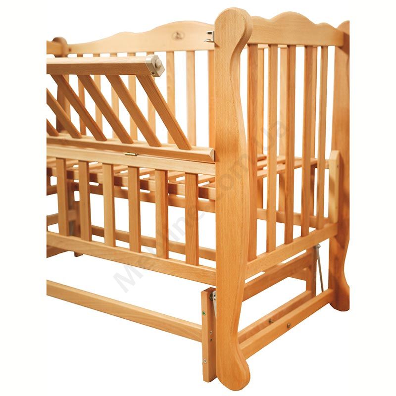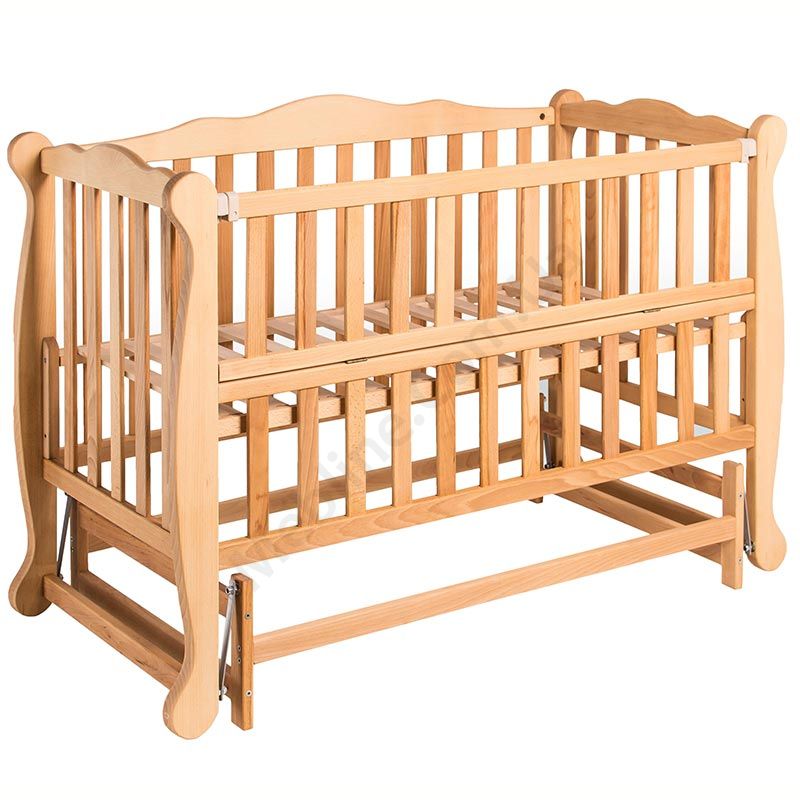 Дитяче дерев’яне ліжечко з маятником та відкидною боковиною.