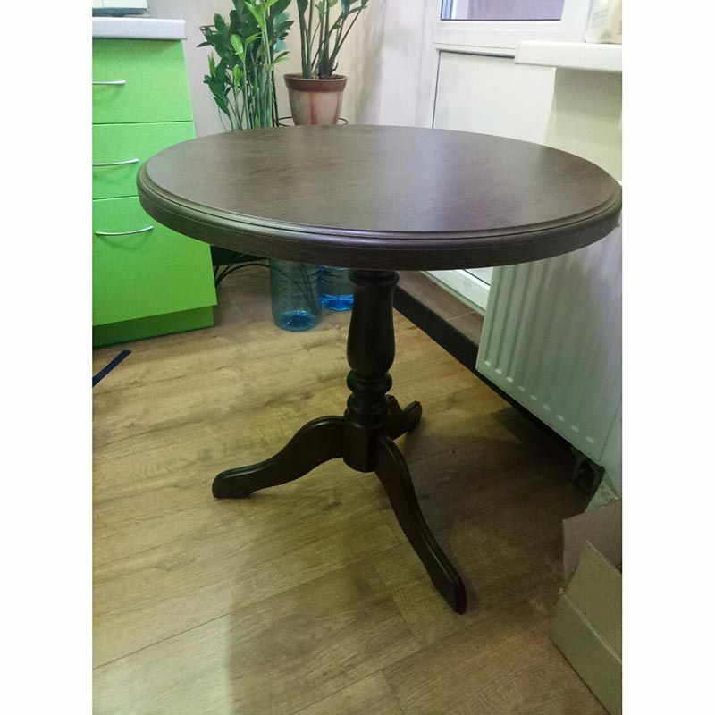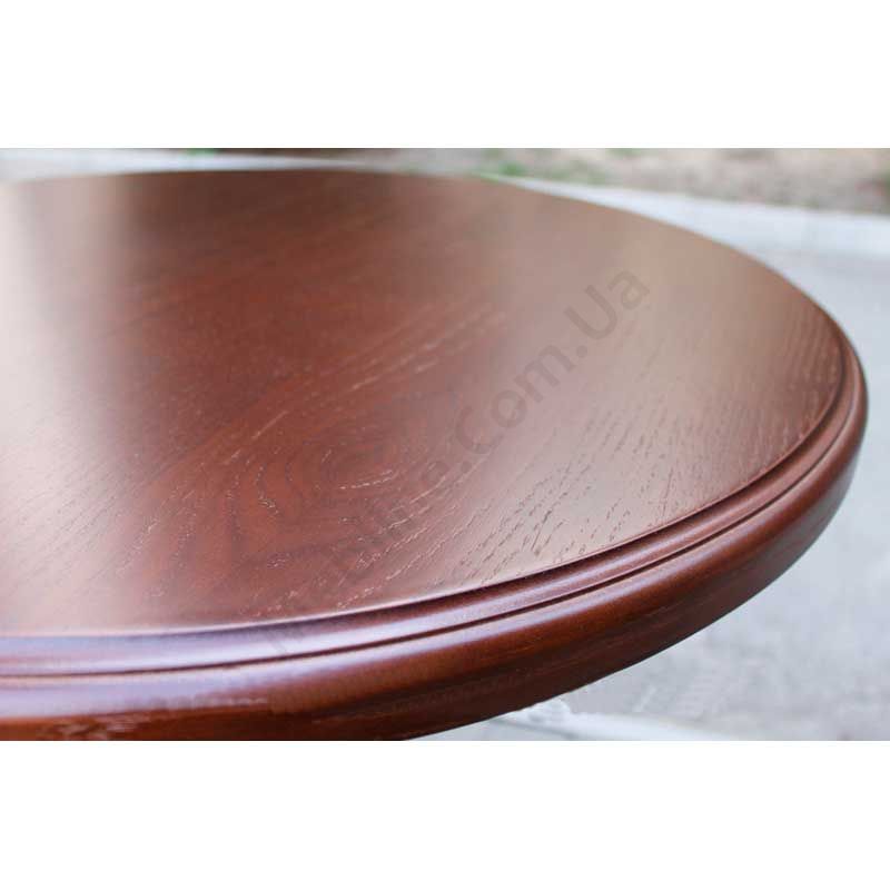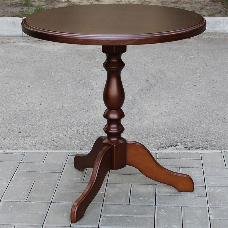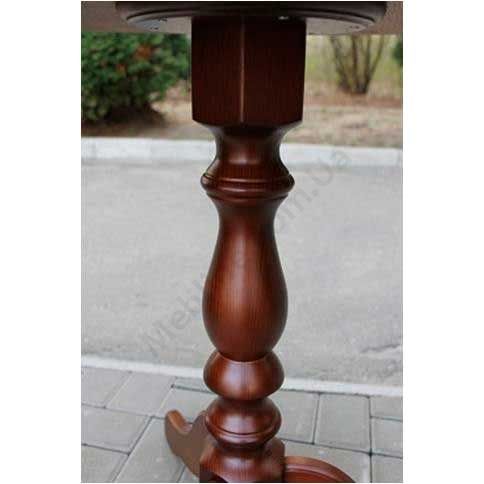 Круглий кавовий столик із натурального дерева на фігурній ніжці.