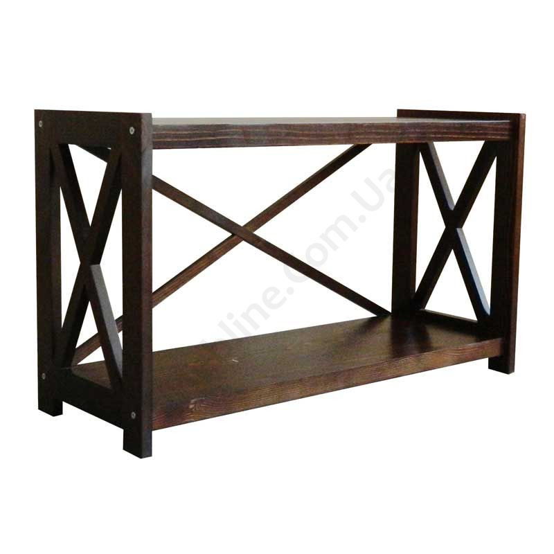Широка етажерка з натурального дерева з однією поличкою.