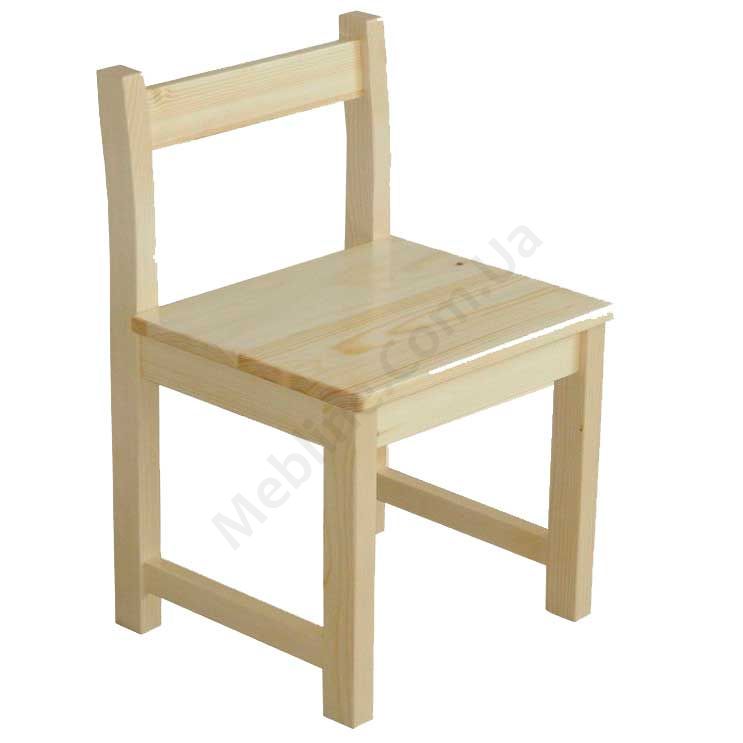 Дитячий стільчик з натурального дерева зі спинкою без підлокітників.
