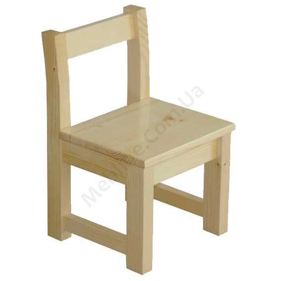 Дитячий стільчик з натурального дерева зі спинкою без підлокітників.