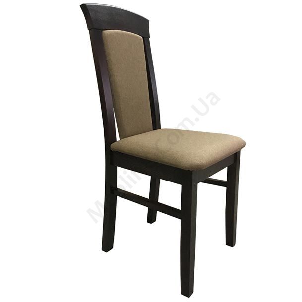 Стілець з натурального дерева з м’якою оббивкою сидіння та спинки.