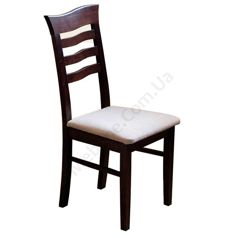 Стілець з натурального дерева з м’якою оббивкою сидіння та твердой спинкою.