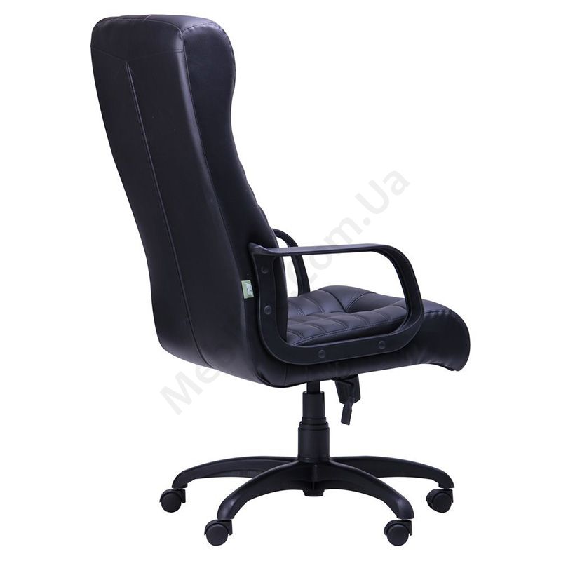 Крісло для керівника з ребристою спинкою та інтегрованим підголівником, пластиковими підлокітниками, фіксацією в вертикальному положенні, на пластиковій основі.