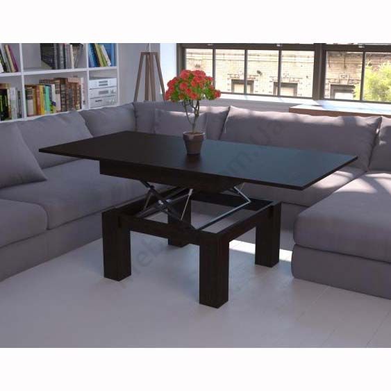 Журнальний столик трансформується в повноцінний обідній стіл.Ламінована ДСП Кроно Україна, завтовшки 16 мм.Екологічна безпека класу Е-1.Фурнітура — DC та Linken.Протиударна кромка стільниці — ПВХ, завтовшки 1 мм.Протиударна кромка корпусу — ПВХ, завтовшки 0, 5 мм.