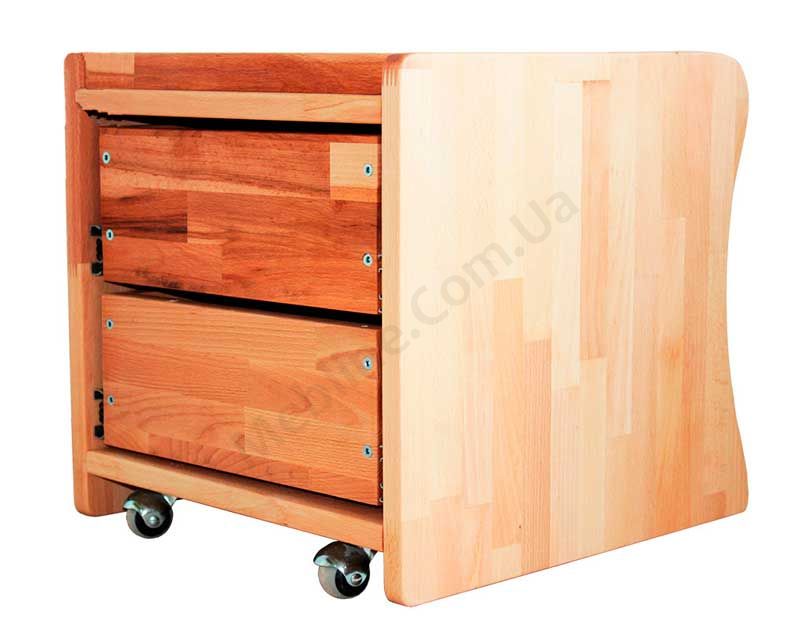 Тумба на коліщатках з натурального дерева – необхідний атрибут дитячої кімнати. Це додаткове місце для зберігання канцелярського приладдя та підручників. Додатково модель обладнана спеціальним місцем для сидіння, на яке можна покласти пуф або невелику подушку для зручності. Переваги: