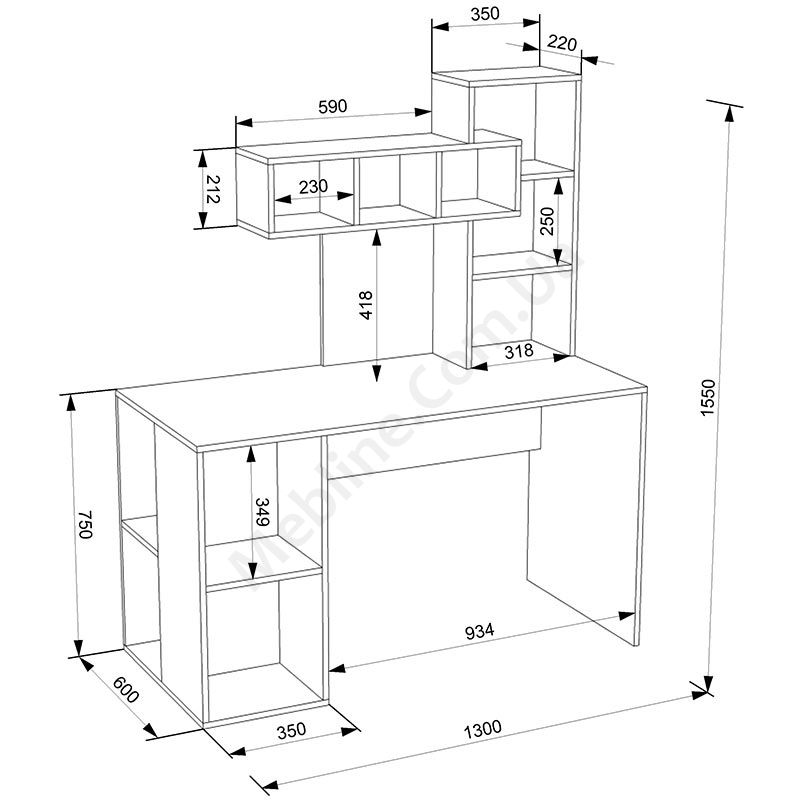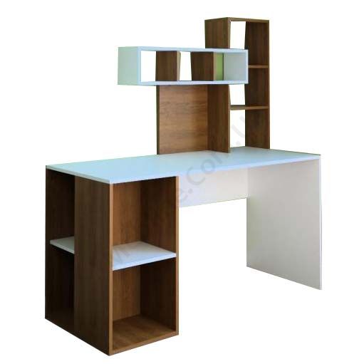 Комп’ютерний стіл з надставкою та відкритими полицями.