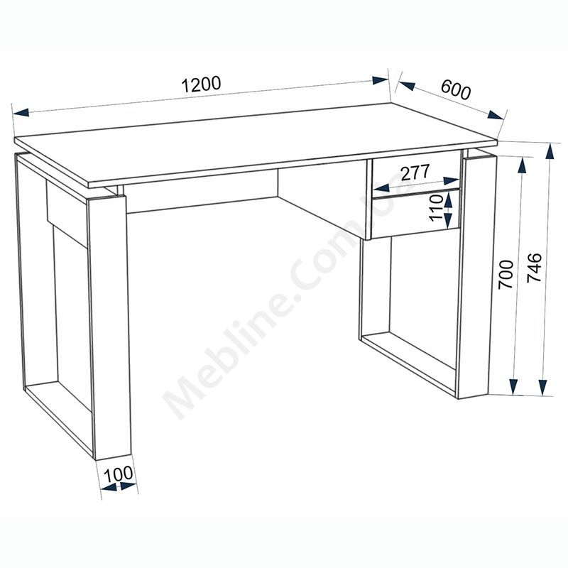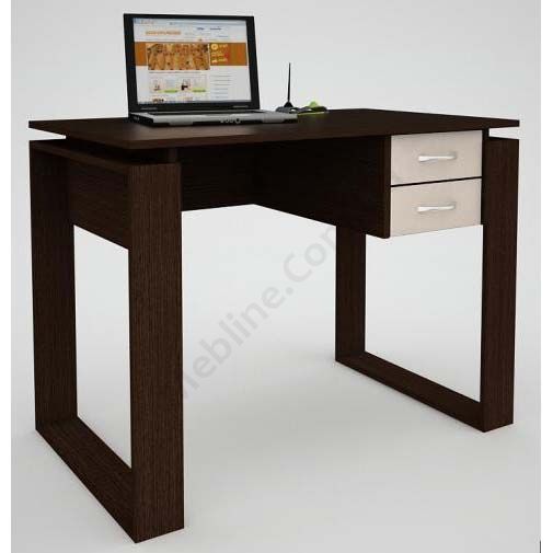 Прямий комп’ютерний стіл з двома висувними шухлядами.