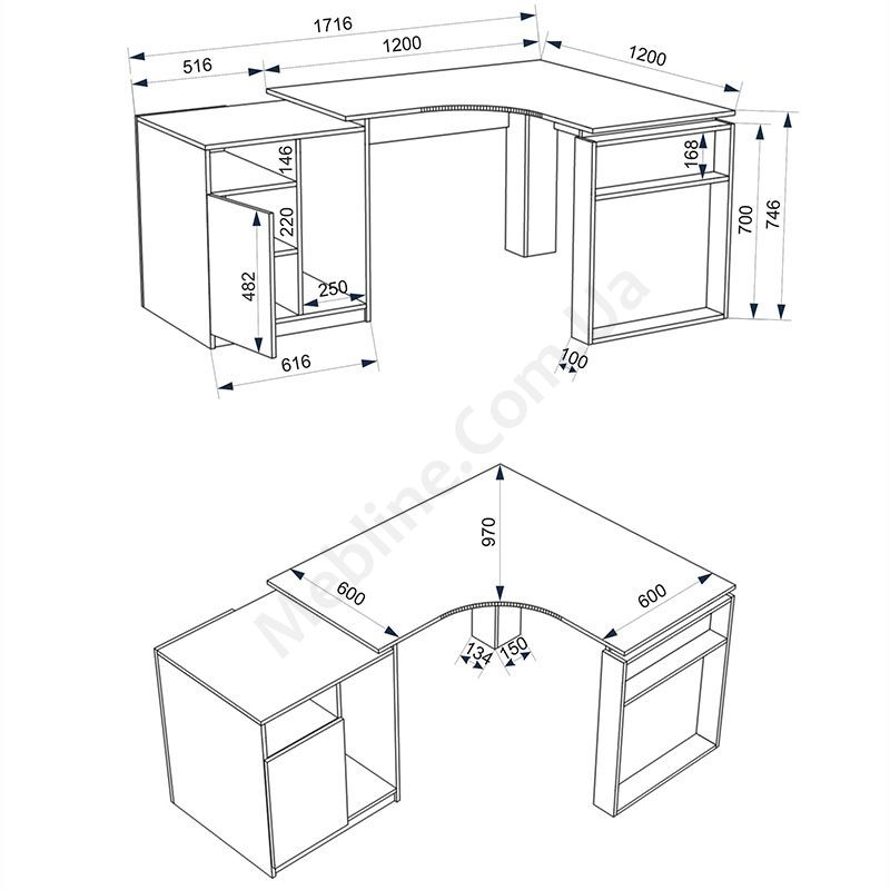 Можливе виконання у дзеркальному відображенні.Усередині тумби дві полички.Матеріал — ламінована ДСП Кроно Україна, завтовшки 16 мм.Екологічна безпека класу Е-1.ДСП має високу щільність.Фурнітура — DC та Linken.Протиударна кромка стільниці — ПВХ, завтовшки 1 мм.Протиударна кромка корпусу — ПВХ, завтовшки 0, 5 мм.