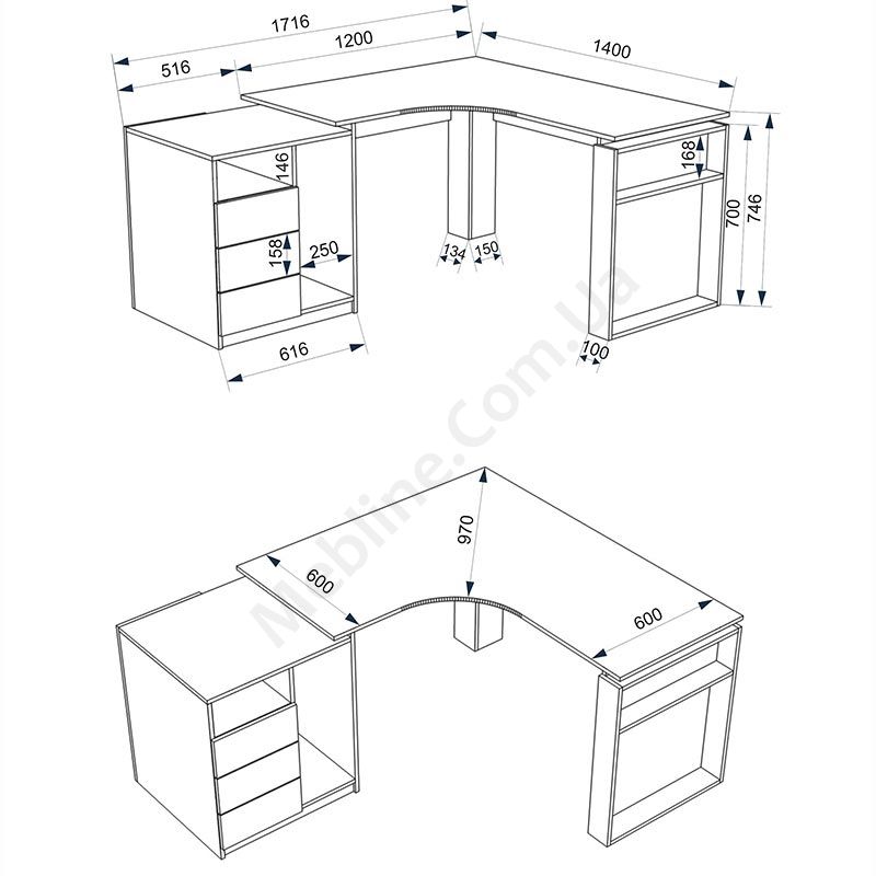 Можливе виконання у дзеркальному відображенні.Матеріал — ламінована ДСП Кроно Україна, завтовшки 16 мм.Екологічна безпека класу Е-1.ДСП має високу щільність.Фурнітура — DC та Linken.Протиударна кромка стільниці — ПВХ, завтовшки 1 мм.Протиударна кромка корпусу — ПВХ, завтовшки 0, 5 мм.