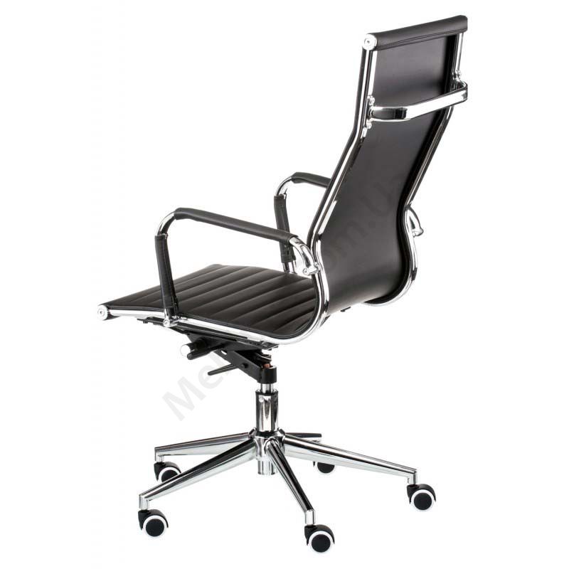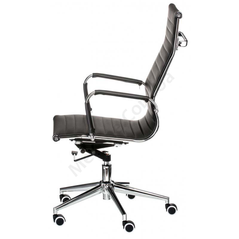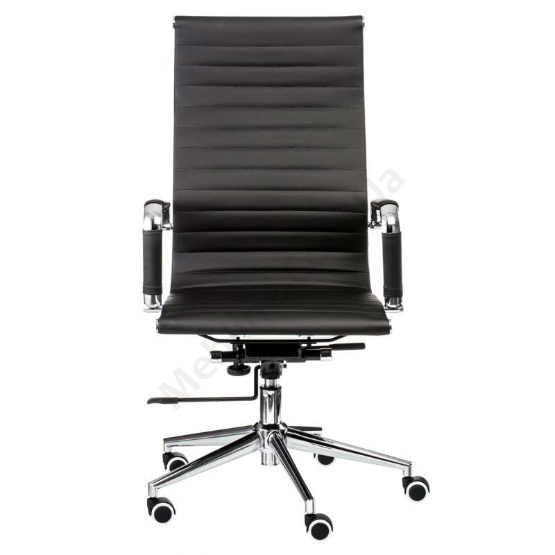 Тонке крісло для керівника з м’якими підлокітниками, регулюванням висоти та прогумованими коліщатками.