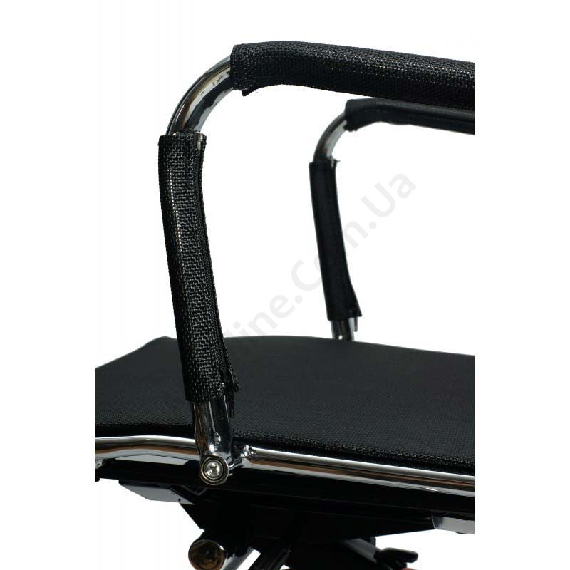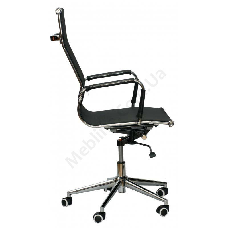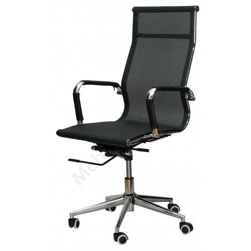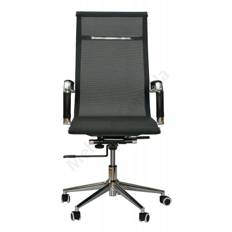 Тонке крісло для керівника з м’якими підлокітниками, регулюванням висоти та сітчастою оббивкою.