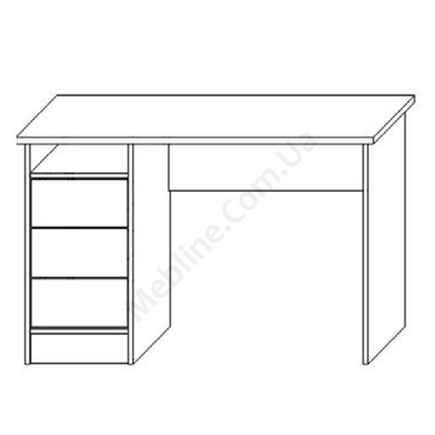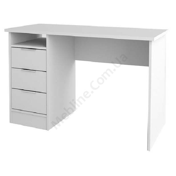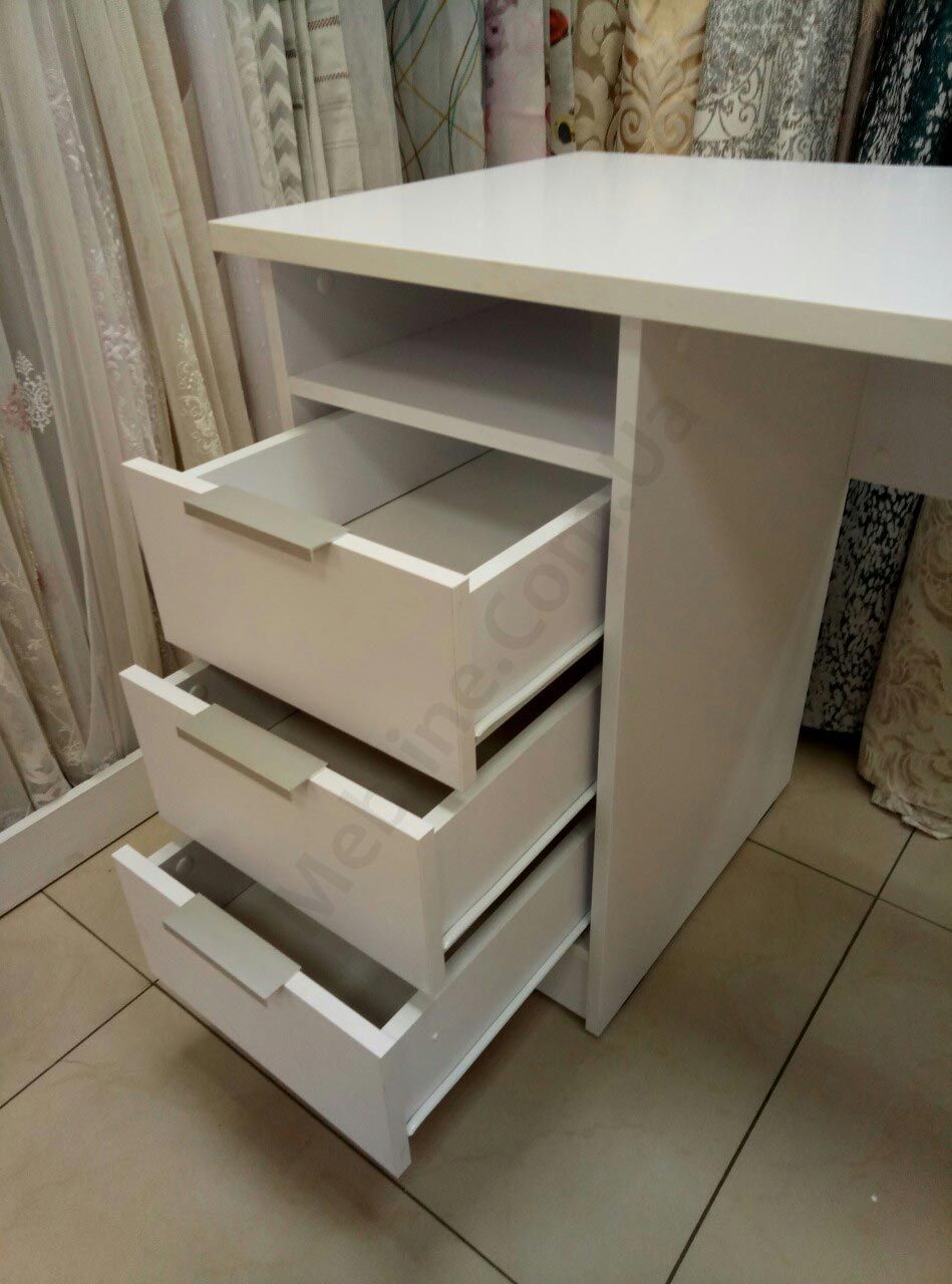 Комп’ютерний стіл з трьома висувними шухлядами та відкритою полицею.