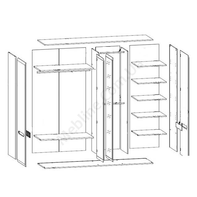 - Права частина шафи — п’ять полиць.