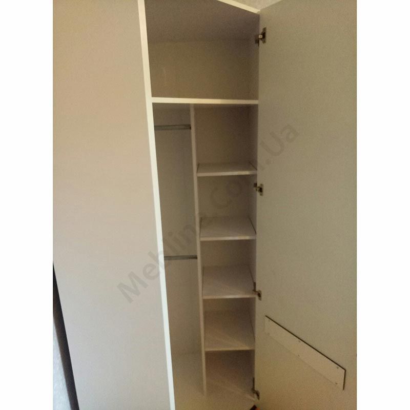 Кутова однодверна шафа зі штангою для одягу та полицями.