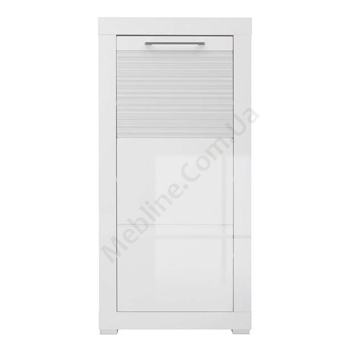 Однодверна тумба з трьома поличками всередині та рифленими вставками на фасаді.