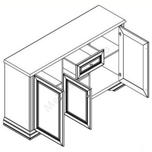 Тумба з трьома дверцятами, висувною шухлядою та декоративними ручками.