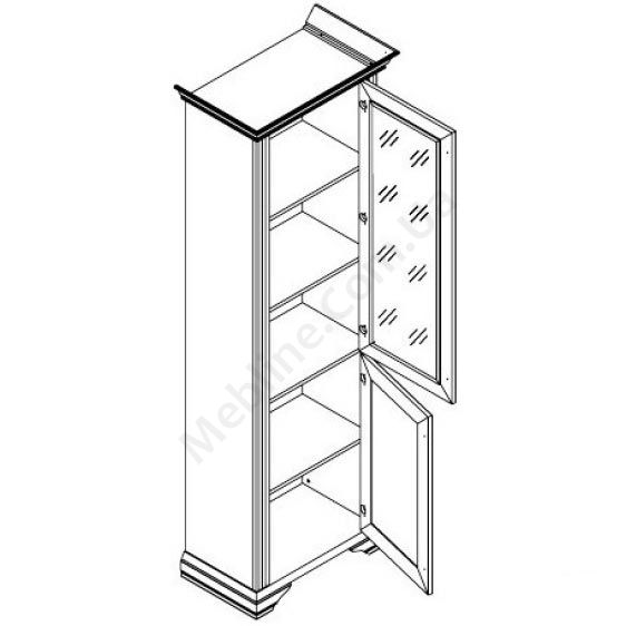 Вітрина зі скляною та глухими дверцятами та карнизом.