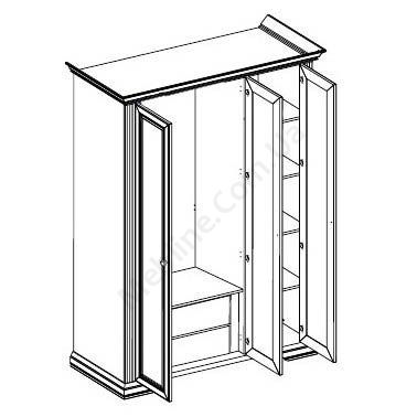 Тридверна платтяна шафа з дзеркалом, карнизом та висувними шухлядами.