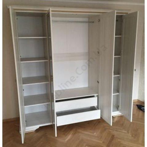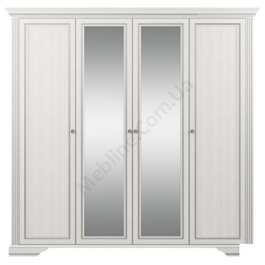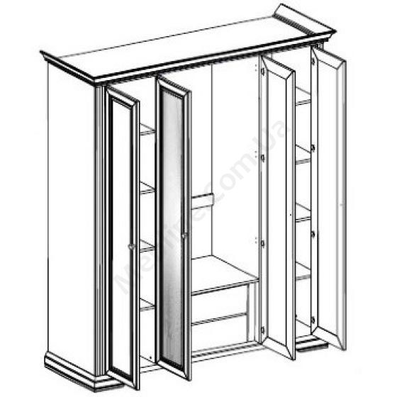 Чотиридверна платтяна шафа з дзеркалом, карнизом та висувними шухлядами.