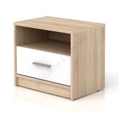 Приліжкова тумба з висувною шухлядою та відкритою полицею.