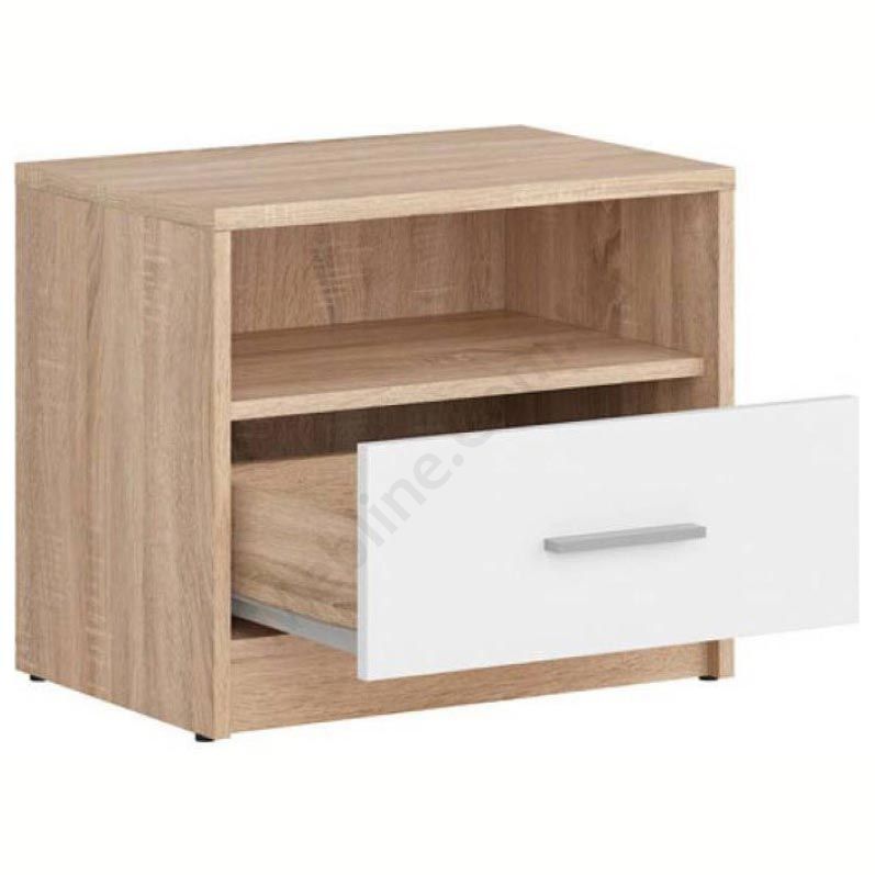 Приліжкова тумба з висувною шухлядою та відкритою полицею.
