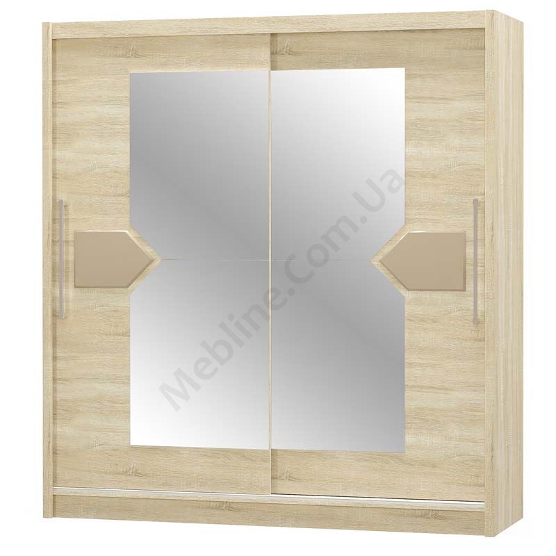 Дводверна шафа-купе з дзеркалом, поличками та штангою для одягу.