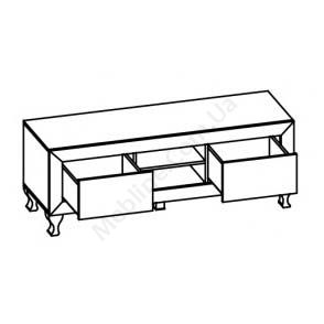 Тумба під телевізор на ніжках з двома висувними шухлядами та відкритими полицями.