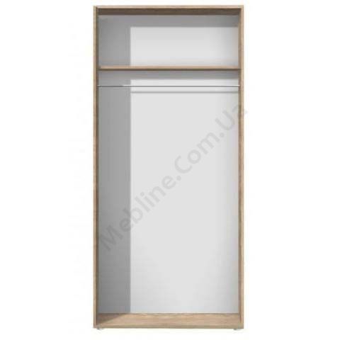 Дводверна шафа зі штангою для одягу та верхньою полицею всередині.