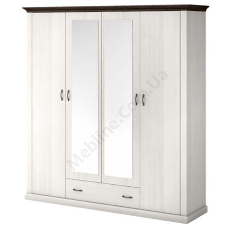 Чотиридверна шафа з дзеркалами, висувною шухлядою та штангою для одягу.