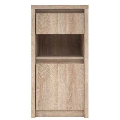 Комод з висувною шухлядою, відкритою полицею та одній дверцятами.