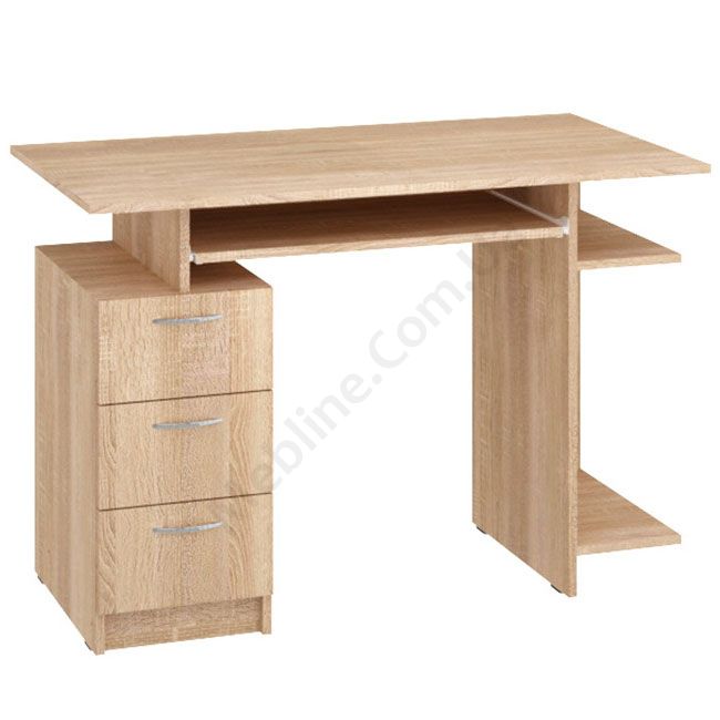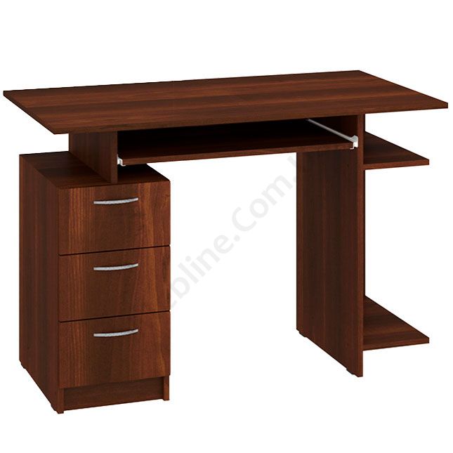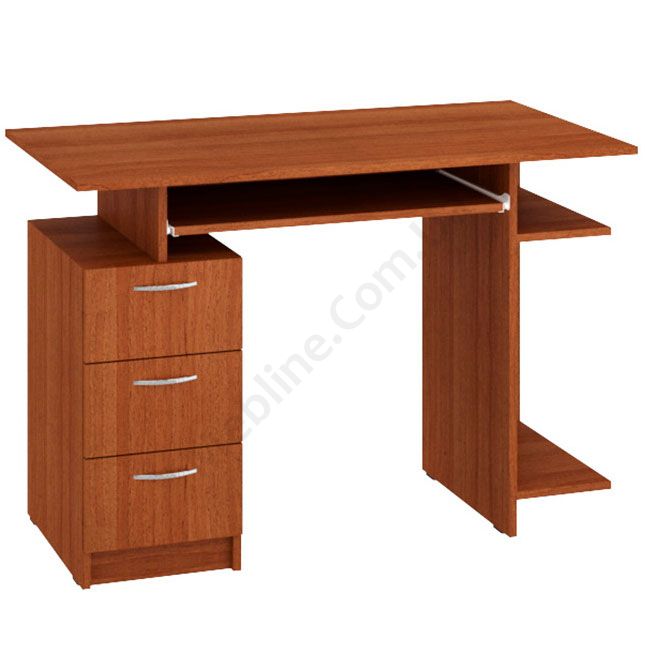 Комп’ютерний стіл з полицею для клавіатури і висувними шухлядами.