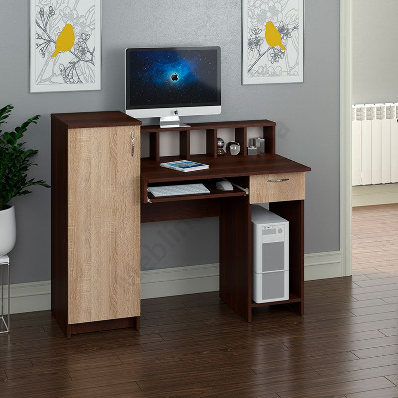 Комп’ютерний стіл з тумбою, висувною шухлядою та полицею під системний блок.