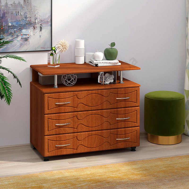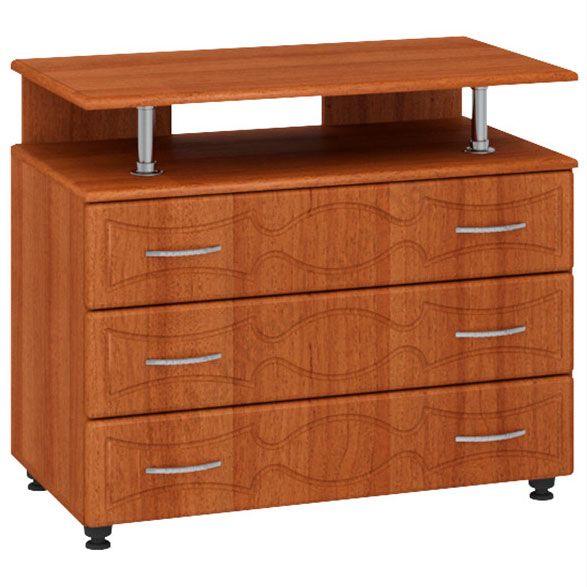 Комод на ніжках з трьома висувними шухлядами та відкритою полицею.