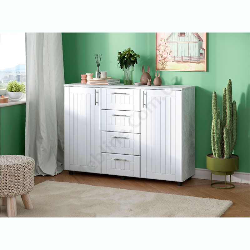 Комод з чотирма висувними шухлядами та двома дверцятами.