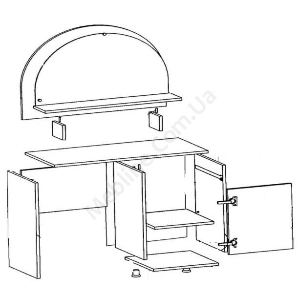 Туалетний столик з дзеркалом, тумбою і поличкою.