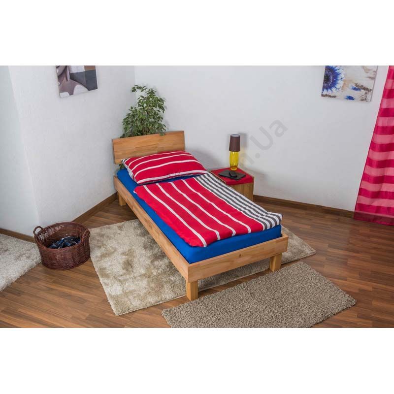 Односпальне дерев’яне ліжко на ніжках з узголів’ям.