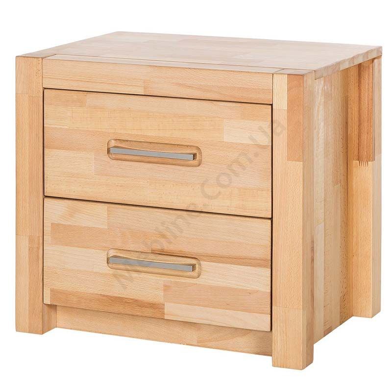 Дерев’яна приліжкова тумба з двома висувними шухлядами.