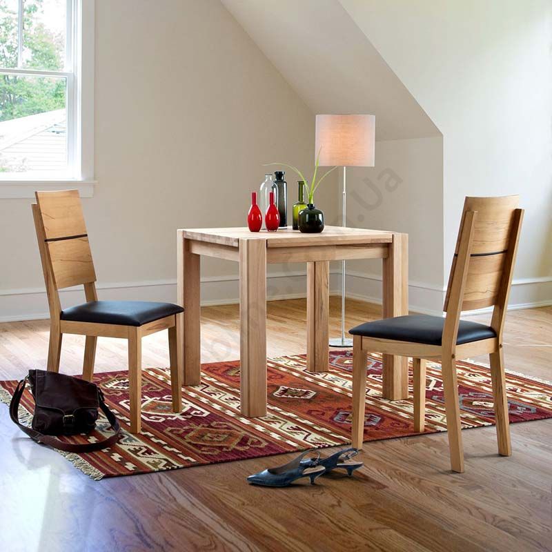 Дерев’яний кухонний стіл квадратної форми на ніжках.